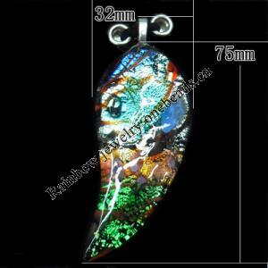 Silver Foil lampwork Pendant With Metal Alloy Head, Twist Diamond 50mm, Sold by PC
