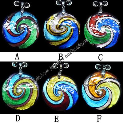 Silver Foil Lampwork Pendant, Flat Round, 40mm Hole:1mm, Sold by PC