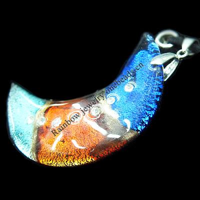 Silver Foil Lampwork Pendant with Metal Alloy Head, Diamond 58mm Hole:3mm, Sold by PC