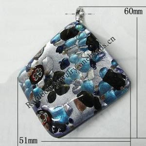 Lampwork Pendant with Acrylic zircon and Metal Alloy Head, Diamond 38x35mm Hole:5x4mm, Sold by PC