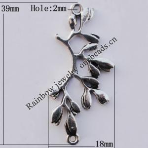 Pendant, Zinc Alloy Jewelry Findings, Flower 19x45mm Hole:2mm, Sold by Bag