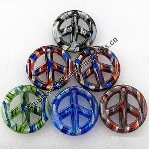 Inner Flower lampwork Pendant Mix Color, 41x31mm Hole:2mm, Sold by Box
