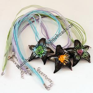 17-inch Lampwork Necklaces, Wax Cord & Organza Ribbon Transparent & Lampwork Pendant, 45x38mm, Sold by Strand