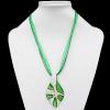 17-inch Lampwork Necklace, Wax Cord & Organza Ribbon Transparent & Inner Flower Lampwork Pendant, Leaf 58x31mm Sold by