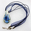 17-inch Lampwork Necklace, Wax Cord & Organza Ribbon Transparent & Iron Clasp Hasp & Lampwork Pendant Sold by Group