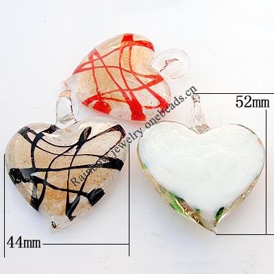 Silver Foil Lampwork Pendant with Metal Alloy Head, Heart 32x28mm Hole:5x4mm, Sold by PC
