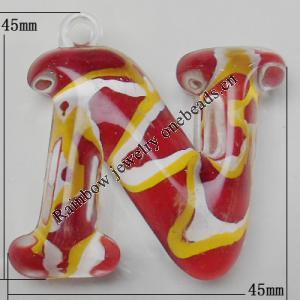 Coloured Acrylic Pendant, Letter 48x44mm Hole:3mm, Sold by Bag