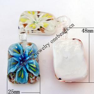 Inner Flower lampwork Pendant, Mix Color, Rectangle 25x48x13mm Hole:About 5mm, Sold by Group