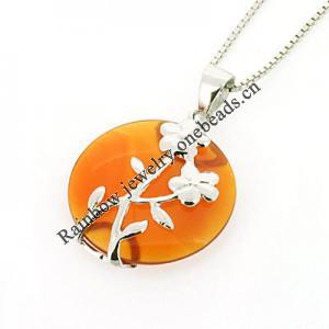 Sterling Silver Pendant/Charm with Agate, 37x28mm, Sold by PC