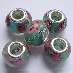 European Style Lampwork Beads With 925 sterling silver Core, 10x14mm Hole:About 5mm, Sold by PC