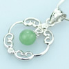 Sterling Silver Pendant/Charm, platina plating with Jade, 33x26mm, Sold by PC