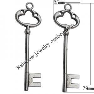 Pendant. Fashion Zinc Alloy Jewelry Findings. Lead-free. Key 28x13mm. Sold by Bag