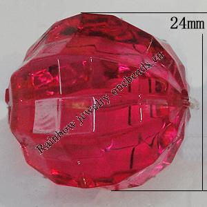 Transparent Acrylic Beads, Fluted Round 24mm Hole:2.5mm, Sold by Bag