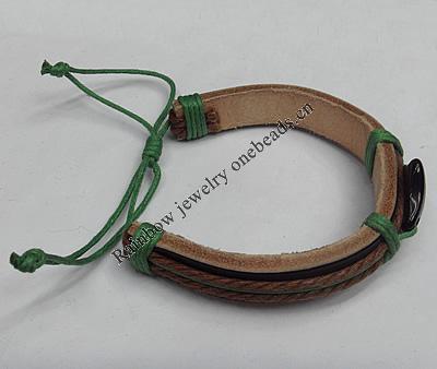 7.1 Inch Cowhide (Cowskin) with waxed cotton & Wood Beads Bracelet Mix color Mix style Sold by Bag