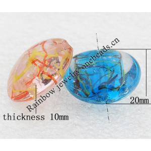 Lampwork Beads, Mix Color Flat round 20x10mm, Hole:About 2mm, Sold by Group