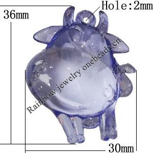 Transparent Acrylic Pendant, Animal 30x22mm Hole Big:6mm Small:2mm, Sold by Bag