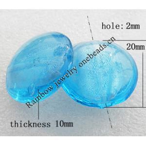 Silver Foil Lampwork Beads, Flat Round 20x10mm Hole:About 2mm, Sold by PC