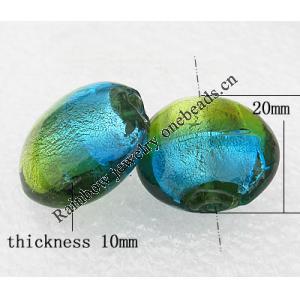 Silver Foil Lampwork Beads, Flat Round 28x13mm, Hole:About 2mm, Sold by PC