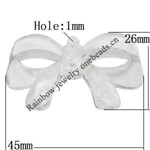 Transparent Acrylic Pendant, Heart 50x40mm Hole:3mm, Sold by Bag