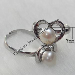 Pearl Ring with Metal Alloy, Beads Size:7mm Hole:About 18mm, Sold by Box