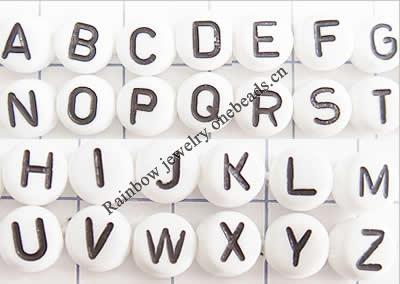 Acrylic Alphabet(Letter) Beads, Flat Round, 7x4mm double-sided alphabet, Sold per pkg of 3600