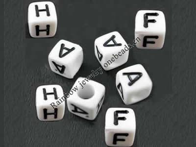 Acrylic Alphabet(Letter) Beads, Plated AB color, Cube, 10x10x10mm, Mix Letters, Sold per pkg of 550