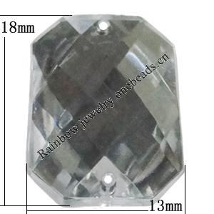 Acrylic Cabochons With Hole, Faceted Rectangle 20x13mm, Sold by Bag