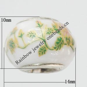 Poracelain Beads European, European Style With Iron Core Rondelle,10x14mm, Hole:5mm, Sold by Bag