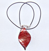 17-inch Lampwork Necklace, Wax Cord & Organza Ribbon Transparent & Inner Flower Lampwork Pendant, Leaf 58x31mm Sold by