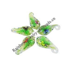 lampwork Pendant, Mix Color, Leaf 61x40x6mm Hole:About 7mm, Sold by Group
