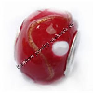 Handmade European Style Lampwork Beads With Platinum Color Copper Core, 15x10mm Hole:5mm, Sold by PC
