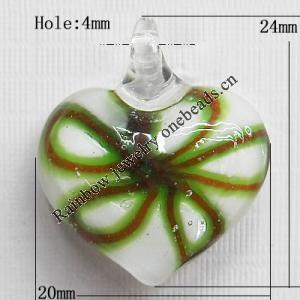 Lampwork Pendant For Earring, Heart 24x20mm Hole:About 4mm, Sold by PC