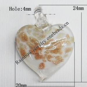 Lampwork Pendant For Earring, Heart 24x20mm Hole:About 4mm, Sold by PC