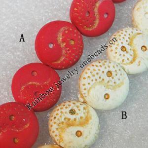 Pottery Clay Beads, Flat Round 20mm Hole:About 1.5mm , Sold by PC