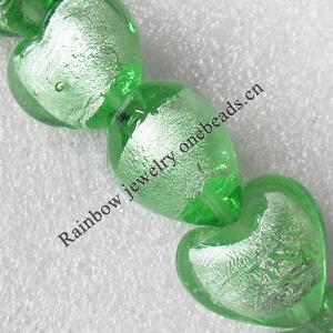 Silver Foil Lampwork Beads, Heart 12mm Hole:About 1.5mm, Sold by PC
