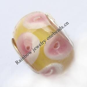 Handmade European Style Lampwork Beads With Platinum Color Copper Core, 15x10mm Hole:5mm, Sold by PC