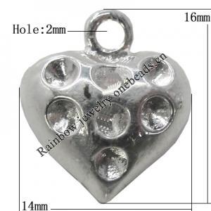 Pendant Setting Zinc Alloy Jewelry Findings Lead-free, Heart 25x24mm Hole:2mm, Sold by Bag