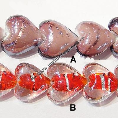 Silver Foil Lampwork Beads, Heart 12mm Hole:About 1.5mm, Sold by PC