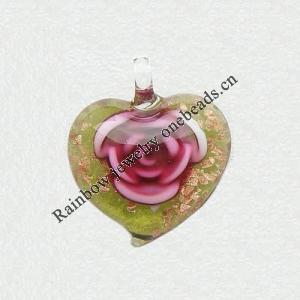 Inner Flower Lampwork Pendant, Heart 36x46mm Hole:About 7mm, Sold by PC