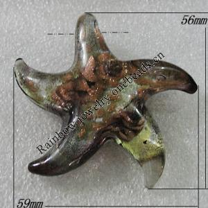 Lampwork Glass Pendant,Rectangular,38x52x7mm, Hole=5mm, Sold by PC