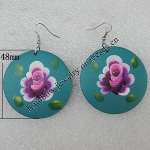 Wooden Earring, Flat Round, 40x55mm, Sold by Dozen