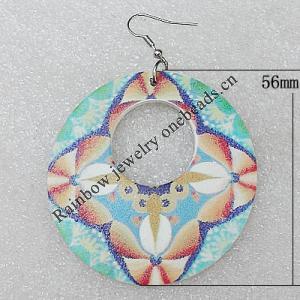 Wooden Earring, Flat Round, 40x56mm, Sold by Dozen