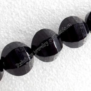 Black Agate Beads, Faceted Drum, 10x14mm, Hole:Approx 1mm, Sold per 16-inch Strand