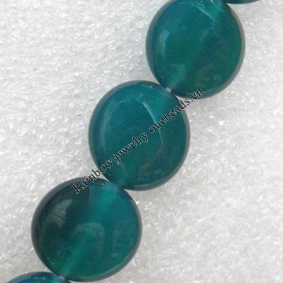 Green Agate Beads, Flat Round, 14mm, Hole:Approx 1mm, Sold per 15.7-inch Strand