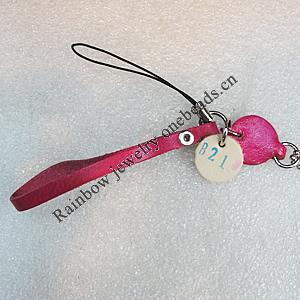Mobile Decoration, PU Leather, Chain: about 60mm long, Pendant: about 70mm wide, Sold by Dozen