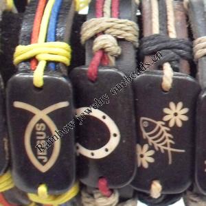 Cowhide with Ox Bone Bracelet,wideth:12mm, Length:17cm, Sold by Dozen
