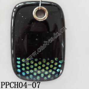 Lampwork Glass Pendant,Rectangular,33x34x7mm, Hole=5mm, Sold by PC