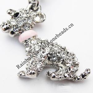 Zinc Alloy Charm/Pendant with Crystal, Nickel-free & Lead-free, A Grade Animal 17x26mm Hole:2mm, Sold by PC