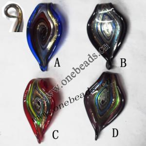 Silver Foil lampwork Pendant, Leaf 31x61x8mm Hole:About 6mm, Sold by PC