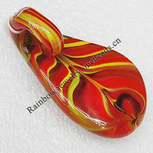 Millefiori Glass Pendants, Leaf 63x34mm Hole:12mm, Sold by PC